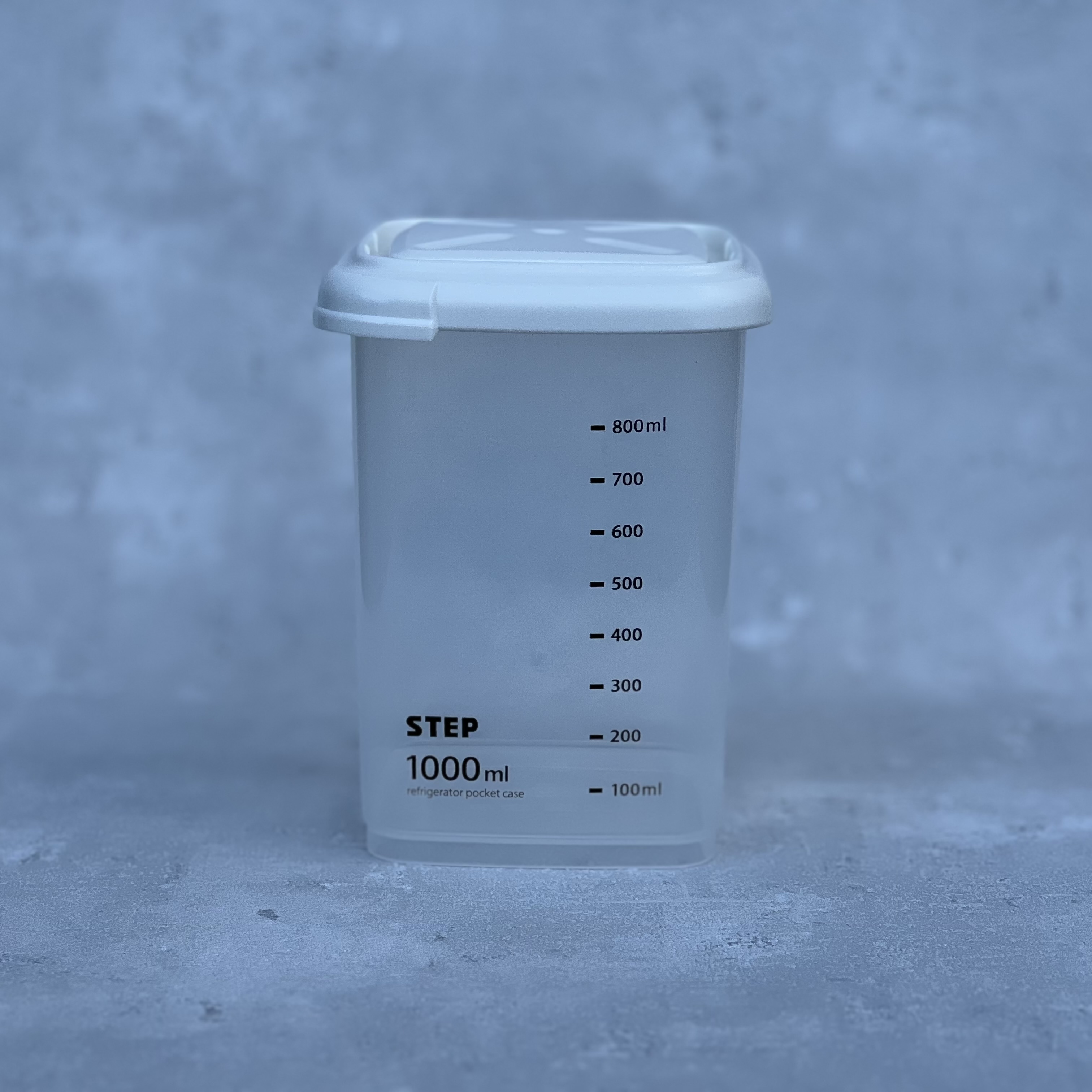 Plastová čvercová doza s víčkem o objemu 1litru.